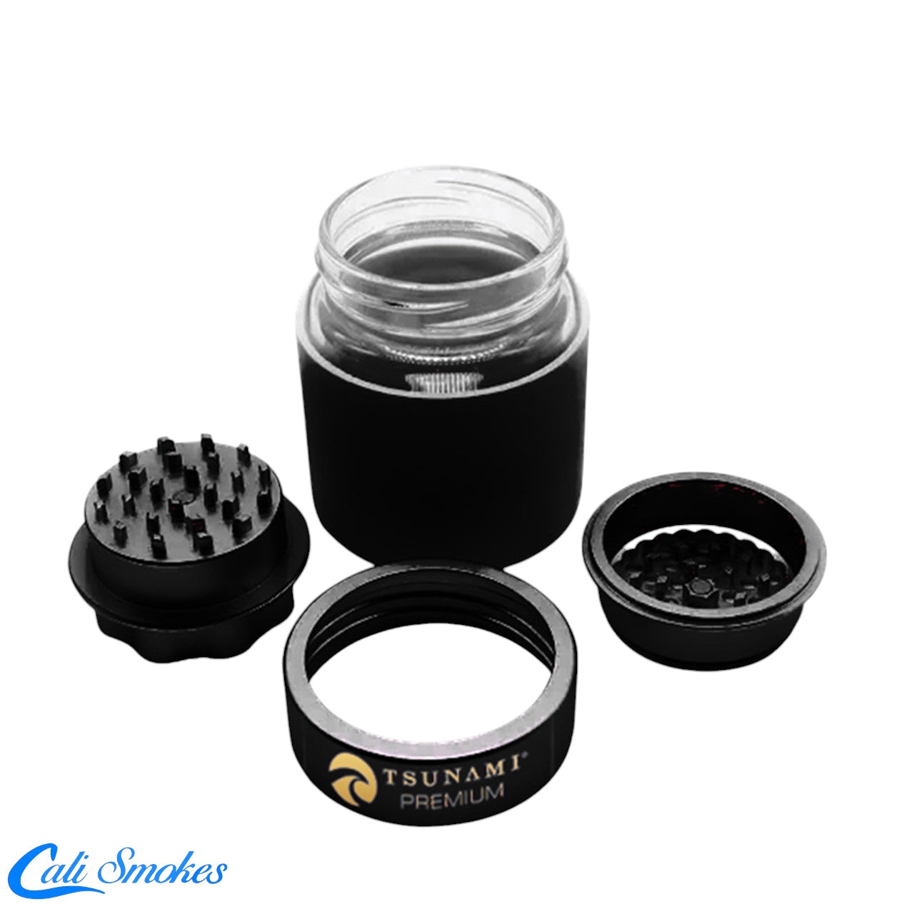 1 x Tsunami Premium Metal Grinder Air Tight Glass Jar With Locking Lid